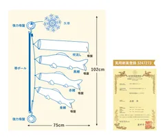 You can easily decorate it on the window glass with a strong suction cup. We have devised a unique way to display a real carp streamer indoors, as if it were swimming against the sky. We have solved the problem of not being able to decorate carp streamers in high-rise condominiums due to safety concerns, and have succeeded in making carp streamers swim in the sky even in condominiums in a new form. We have registered a utility model as a new idea.