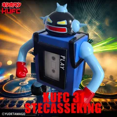 Stekase King carries a "Miracle School Bag" containing the "Superhero Compendium" and has a cassette player-shaped torso. The tape head on its belly is carefully cleaned to maintain high sound quality. The leg-powered headphones at his feet can emit a million horns of sound. In the development of this Stekase King, we commercialized the entire figure in soft vinyl. Clear parts are used for the antennae and other parts that cannot be expressed on soft vinyl, and the cassette deck parts of the Steccase are also made with clear parts. The "Cho-Daishu" inside the figure is also faithfully reproduced from the original work. The figure has a "toy-like" appearance (according to instructor Snigator) and is packed with fun.