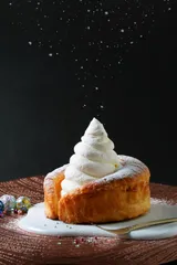 The luxurious croissant is carefully folded up to 48 layers and topped with a generous amount of whipped cream made from pure fresh cream from Hokkaido or soft cream from Hokkaido. Enjoy the blissful harmony of the crispy dough and milky cream.