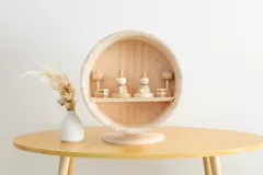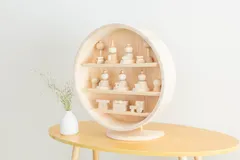Light-colored wood is used to create a white color, designed to fit in with white or Western-style interiors. The dolls and pedestals have a simple design with minimal waste, so they are cute but do not disturb the atmosphere of the room.