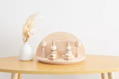 2. Wooden dolls carefully crafted from unpainted wood, safe and secure for children