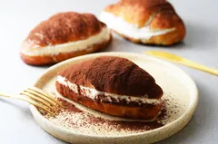 Homemade tiramisu cream sandwiched with whipped cream made from 100% fresh Hokkaido cream