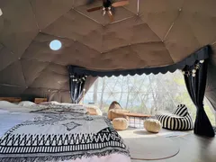 Accommodation in a glamping dome tent & trekking guide of "Michinoku Shiokaze Trail" Oshima Course after check-out the next day