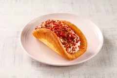 This is a sweet supervised by "Dawn Patisserie Fruta," which has its main store in Naganuma-cho, Yubari-gun. Three layers of soft omelette dough are layered with brûlée cream, custard, and strawberry whip. The sweet and sour strawberry sauce, freeze-dried strawberries, and roasted sugar chips accent the topping.