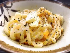 Guilty Betrayal Udon: Udon noodles with seven sinful and junky flavors such as cheese, meat sauce, and seasoned egg.
