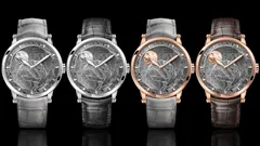 A mechanical moon phase watch with a dial made of natural meteorite