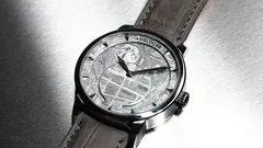 <One-of-a-kind dial made of natural meteorite.